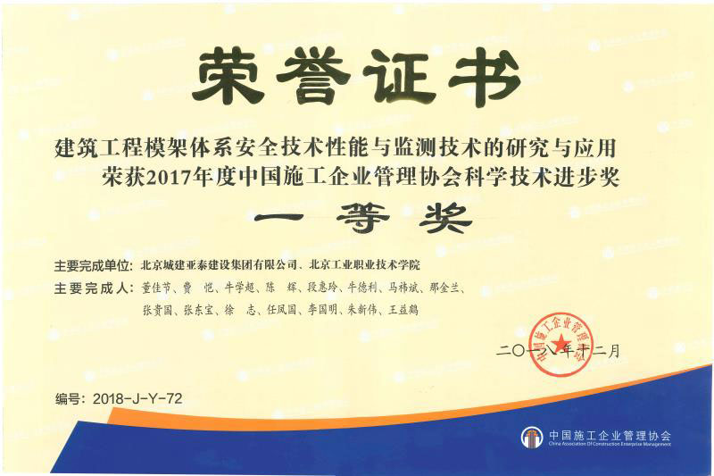 • 建筑工程模架體系安全技術性能與檢測技術的研究與應用 2021-07-08